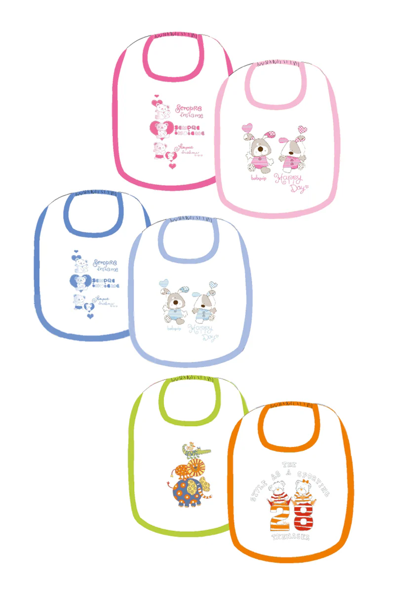 2 Bavettoni con stampa in morbida spugna con elastico e strato interno impermeabile
