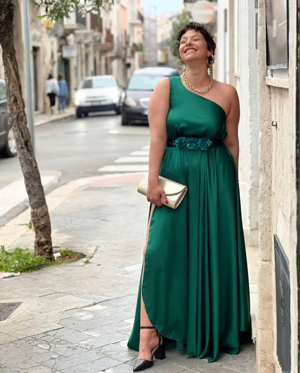 Abito Red Carpet Monospalla Lungo in satin con spacco laterale