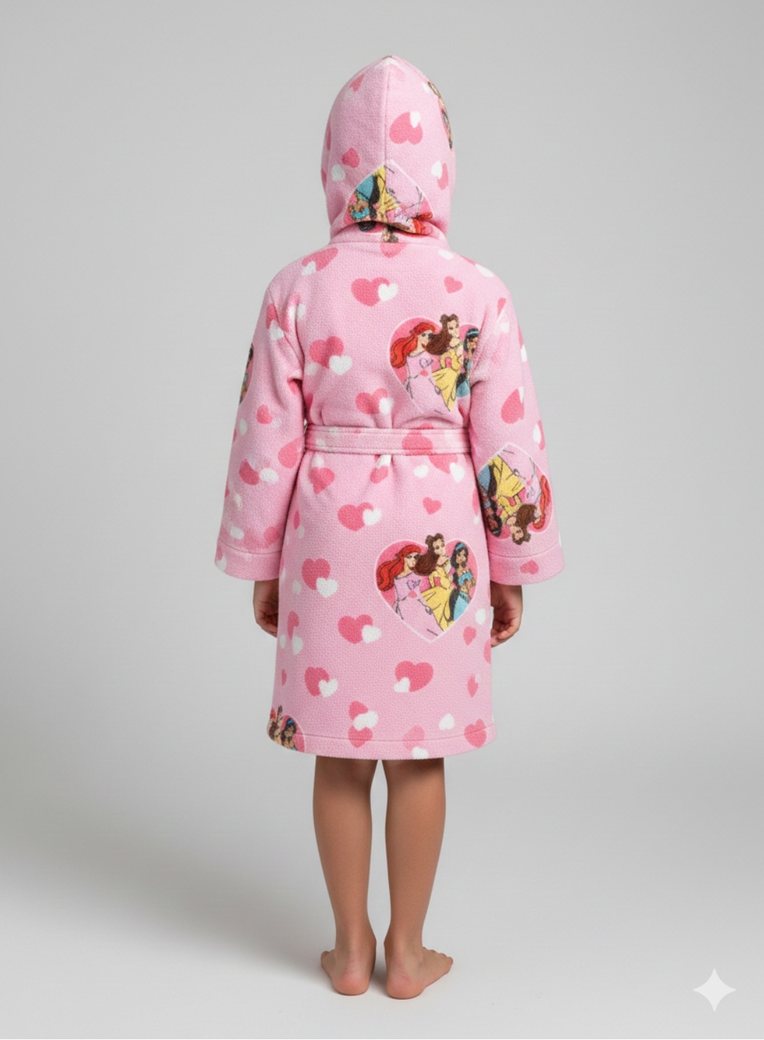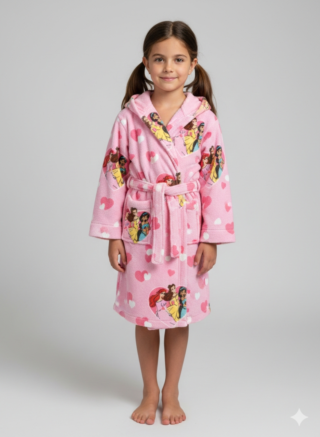 Accappatoio Bambina marca Disney modello Principesse in Morbida Spugna di Cotone – Rosa