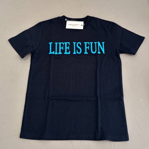 Alberta Ferretti T-shirt nera con scritta celeste