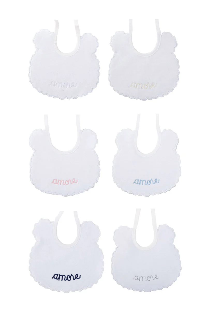 Bavetta neonato con ricamo “Amore” in cotone