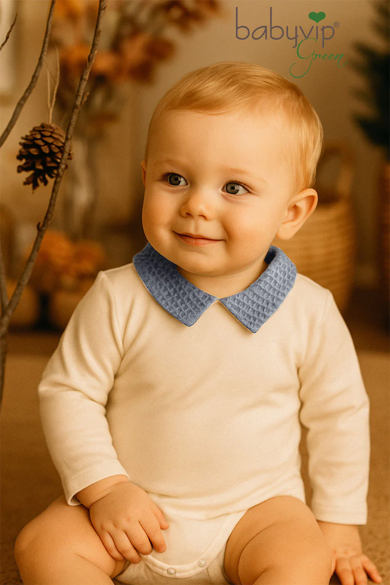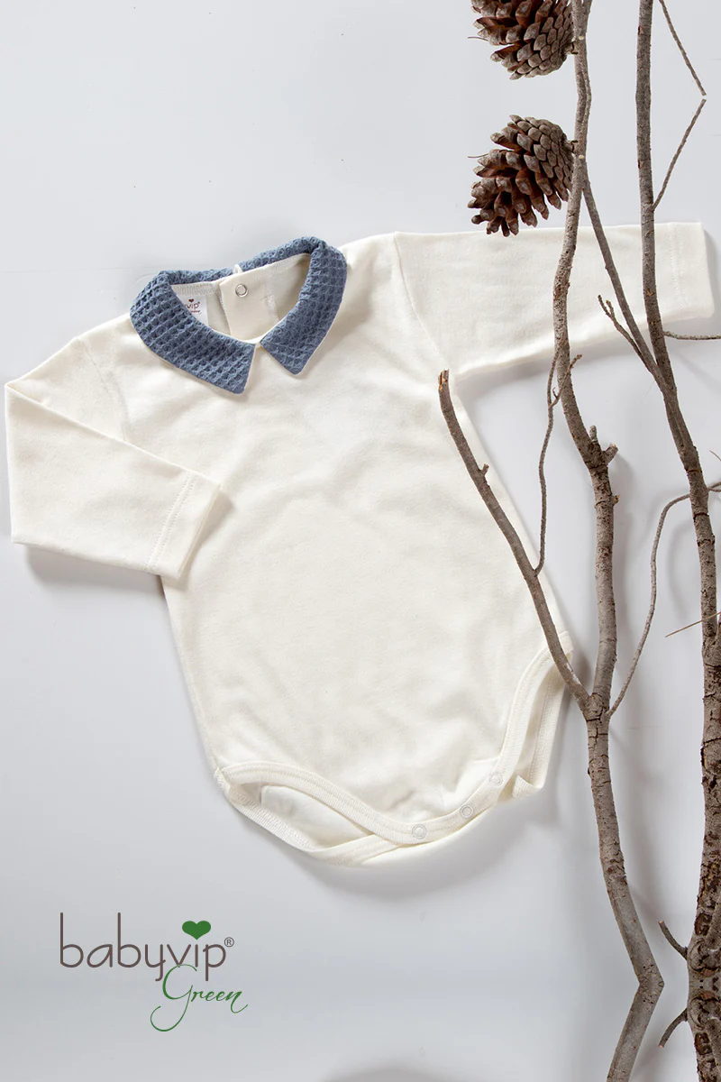 Body in costina organica con colletto in cotone organico a nido d’ape