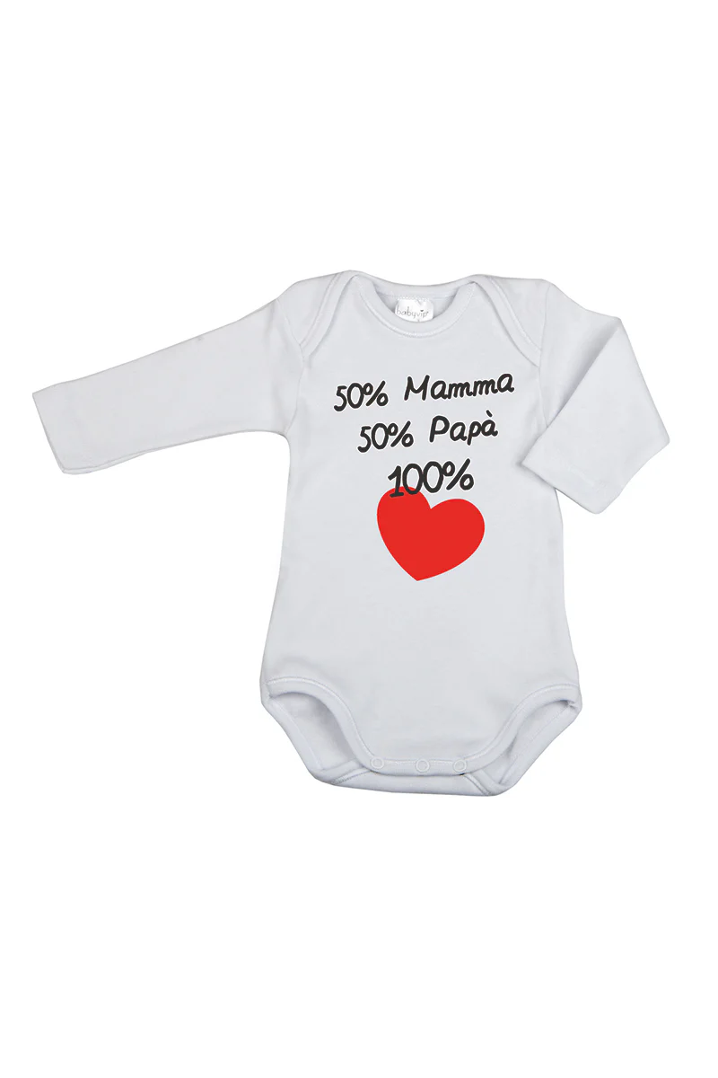 Body manica lunga con stampa “50% Mamma 50% Papà 100% Cuore”