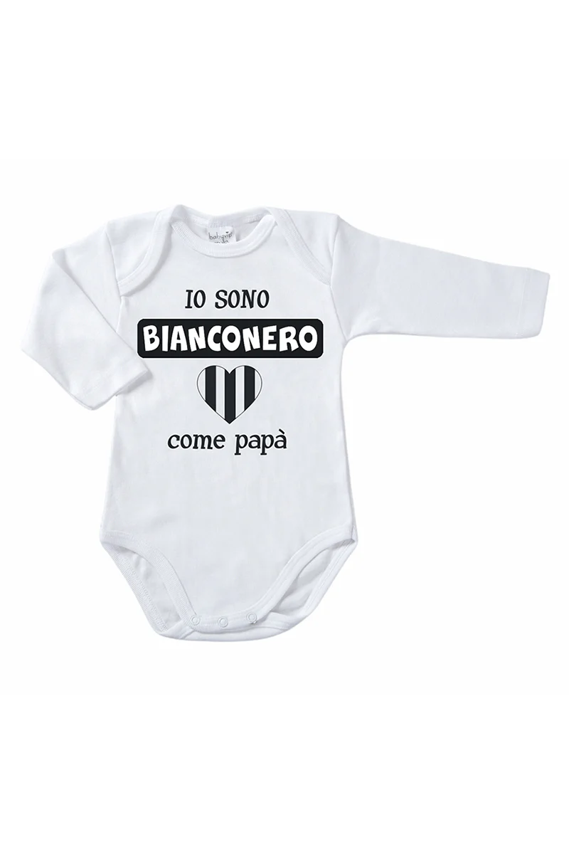 Body manica lunga in cotone con stampa “io sono bianconero come papà”