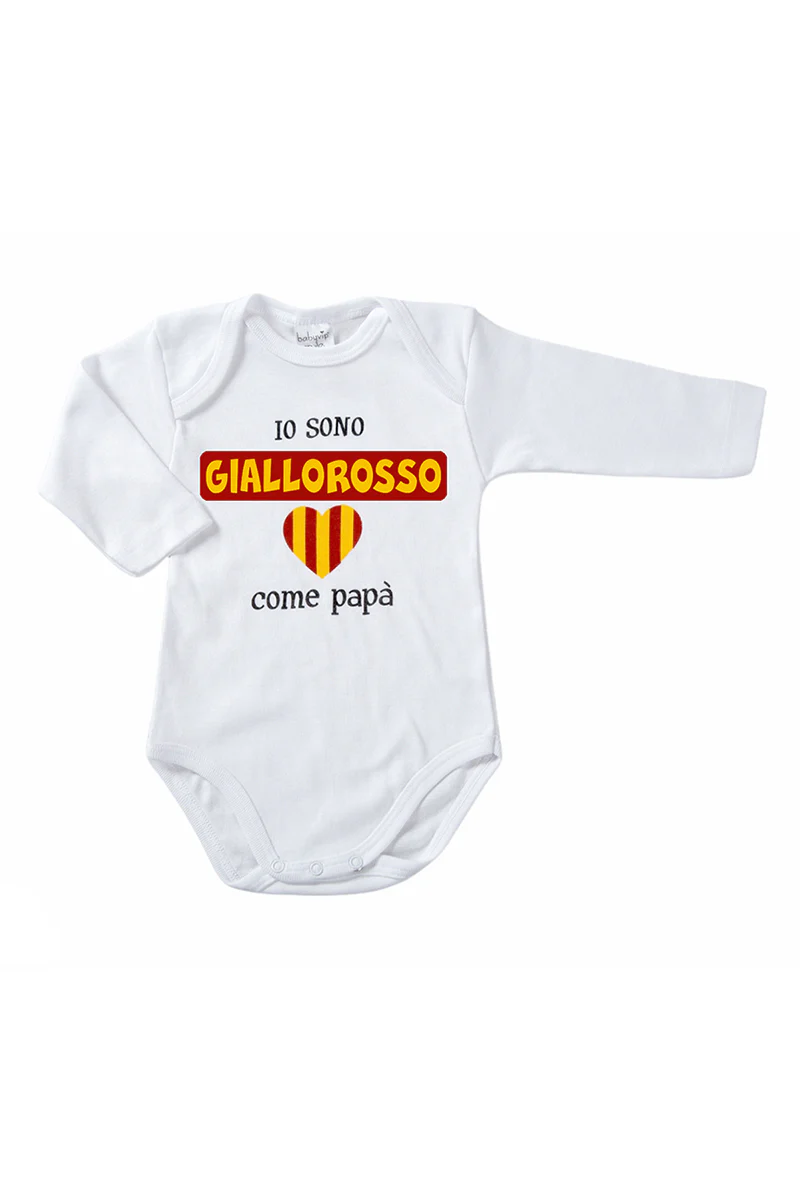 Body manica lunga in cotone con stampa “io sono giallorosso come papà”