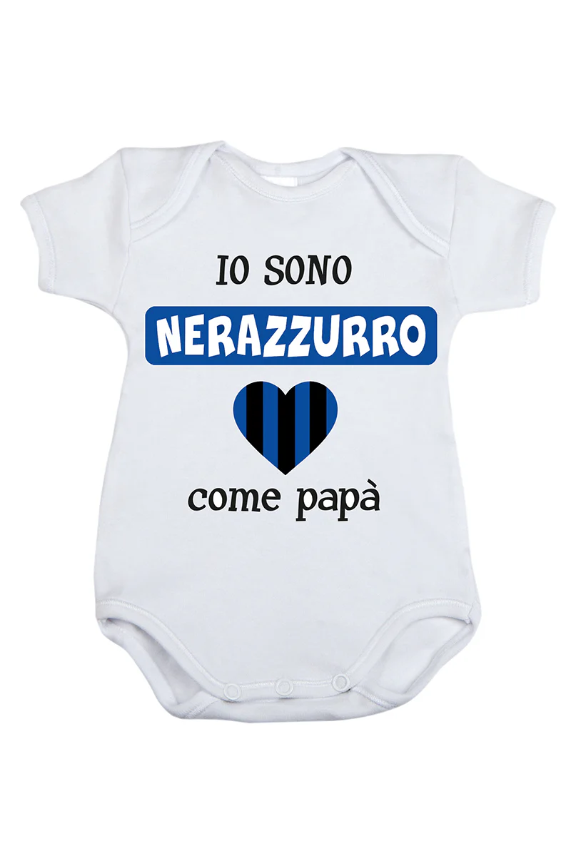 Body mezza manica in cotone con stampa “io sono nerazzurro come papà”
