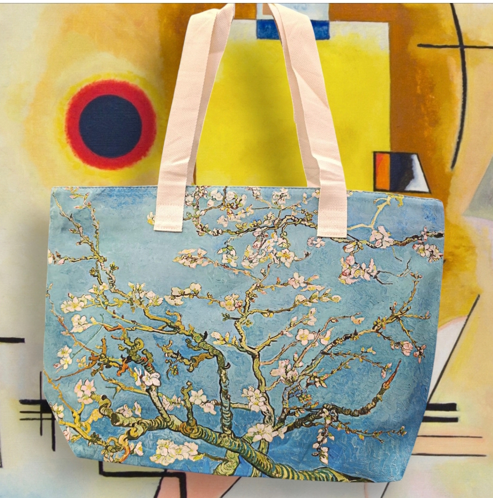 Grande borsa mare rappresentante l’opera “Mandorlo fiorito” di Vincent Van Gogh.