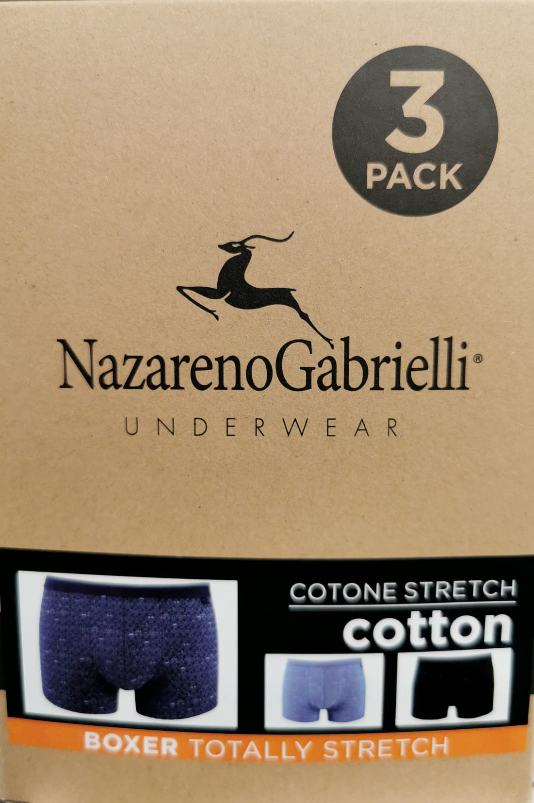 Boxer da uomo, Nazareno Gabrielli, cotone elastico, confezione da 3 pezzi.