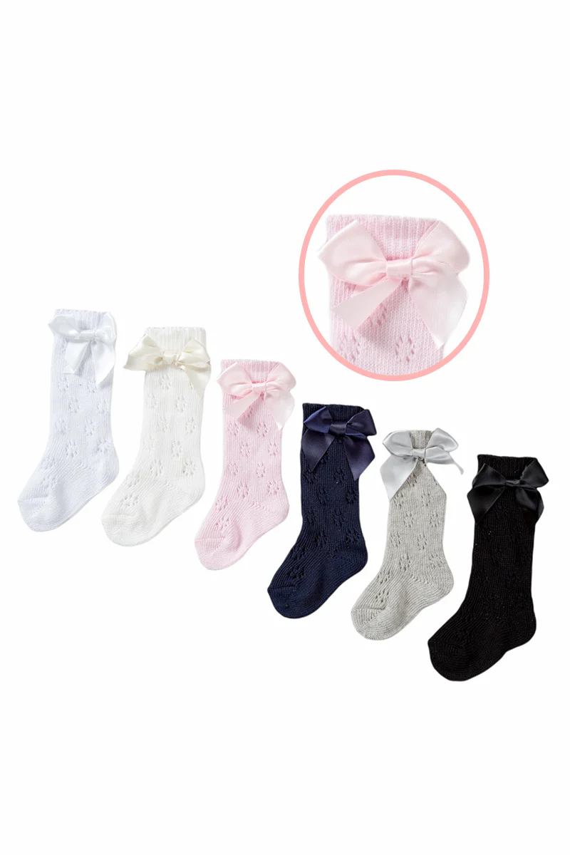 Calza gambaletto traforato in cotone caldo con fiocco