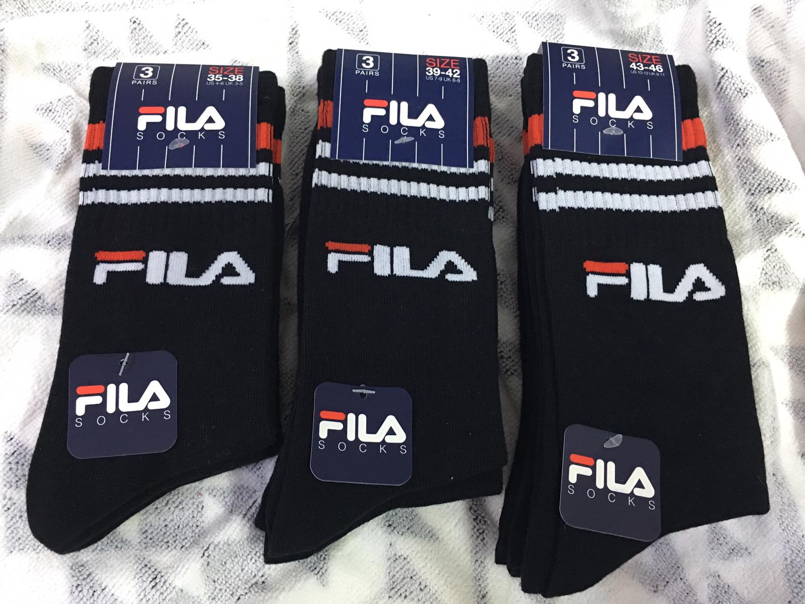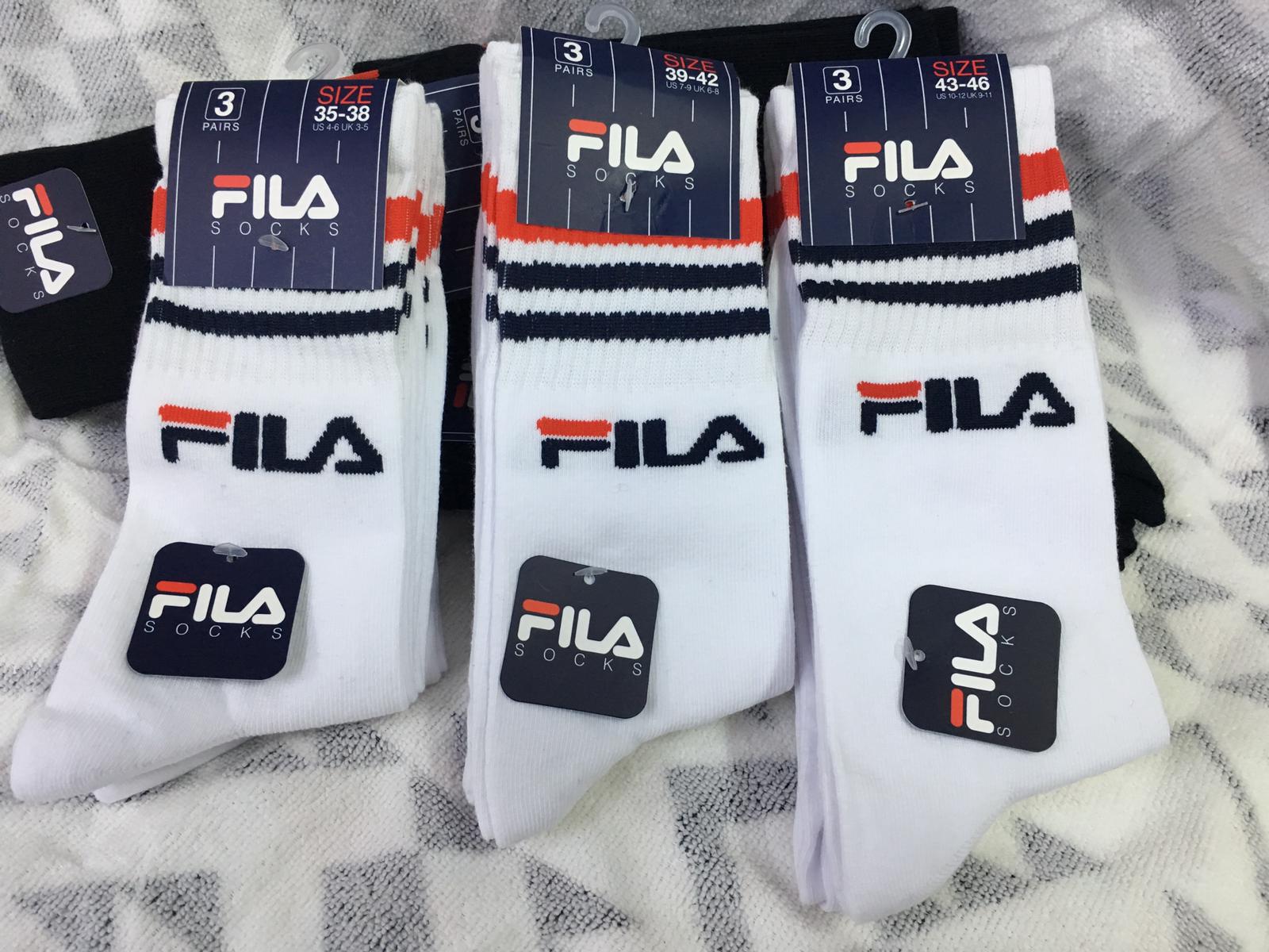 Calzini fila di cotone unisex,corto al polpaccio,6 euro a confezione da tre paia in cotone, disponibile nei colori bianco, nero, navy, grigio chiaro, numeri 35/38 ,39/42 e 43/46