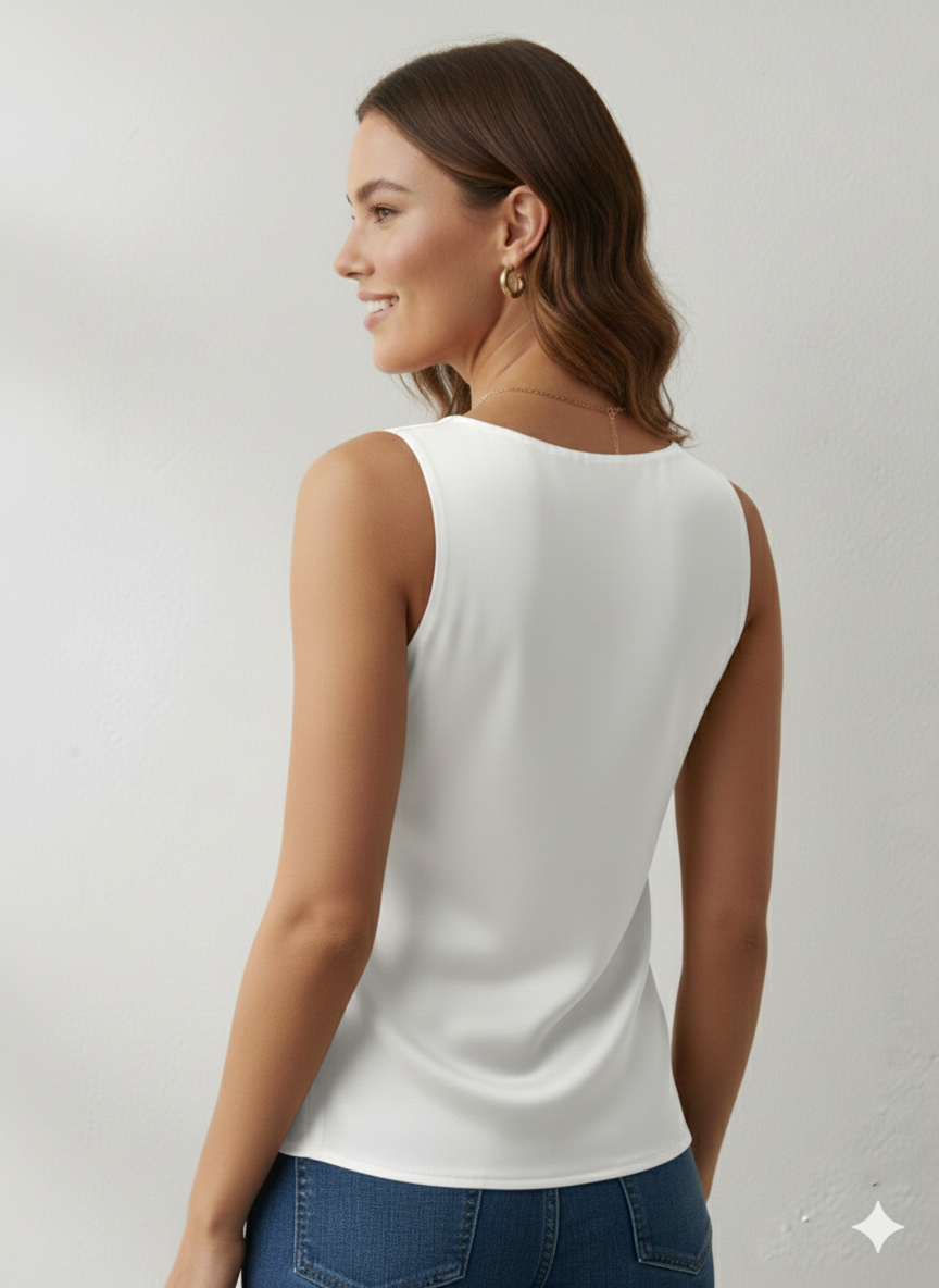 Canotta in morbido Raso con Scollo ad anello in colore bianco – Eleganza e Lucentezza Made in Italy