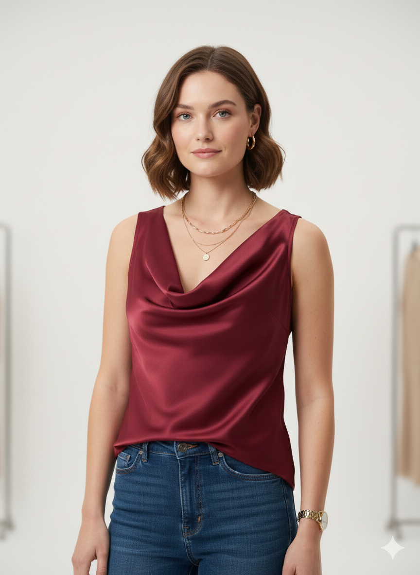 Aggiungi un tocco di luce e raffinatezza al tuo guardaroba con la nostra canotta in raso lucido.