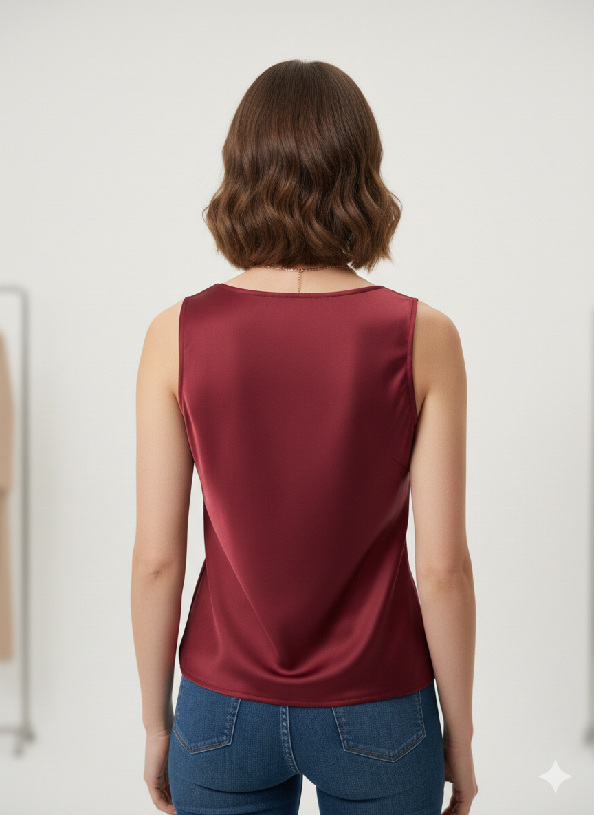 Canotta in morbido Raso con Scollo ad anello in colore Bordò – Eleganza e Lucentezza Made in Italy.