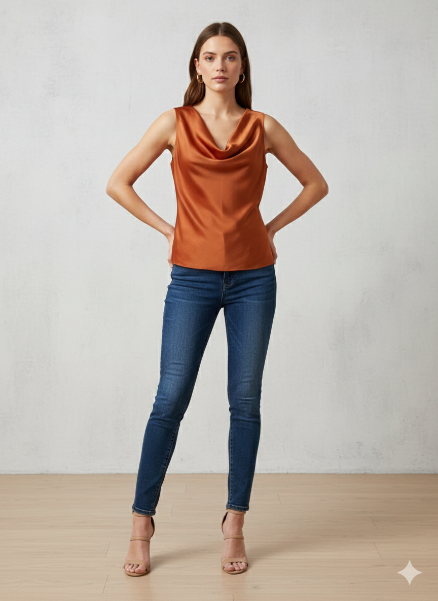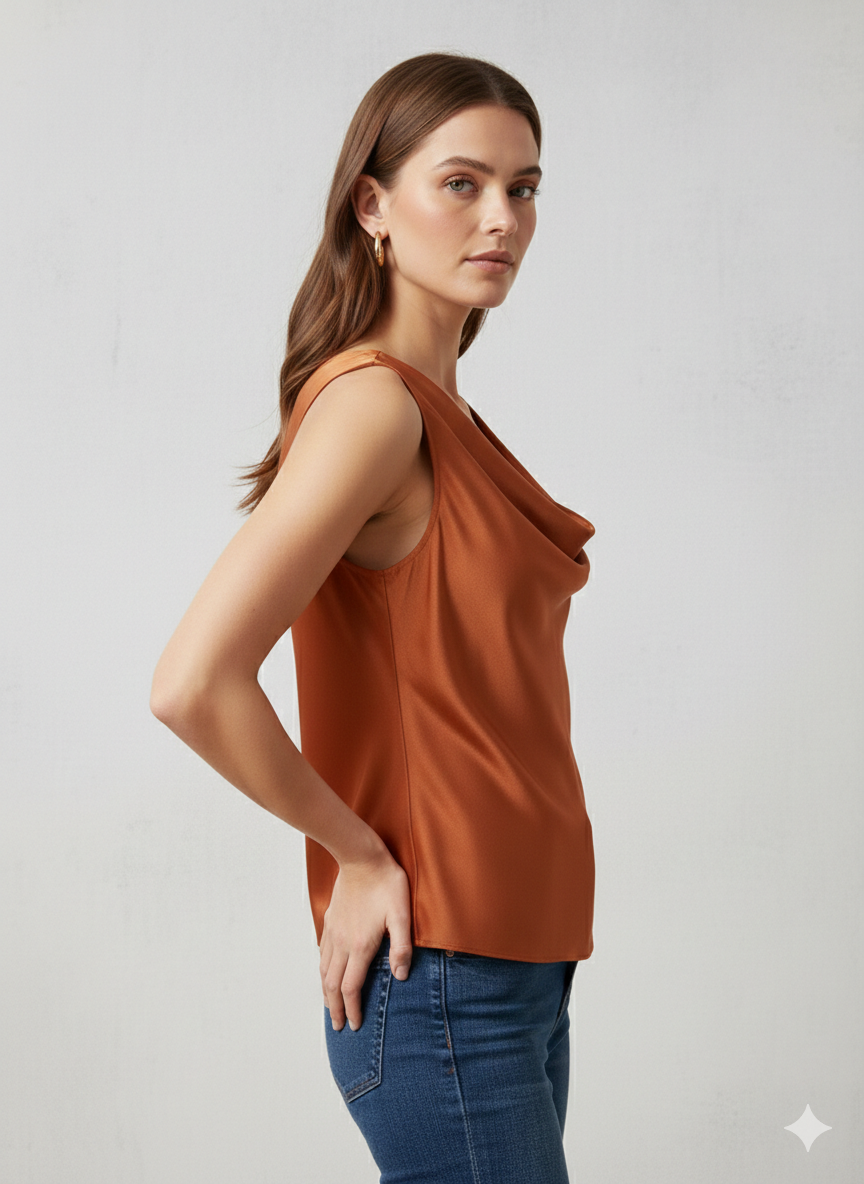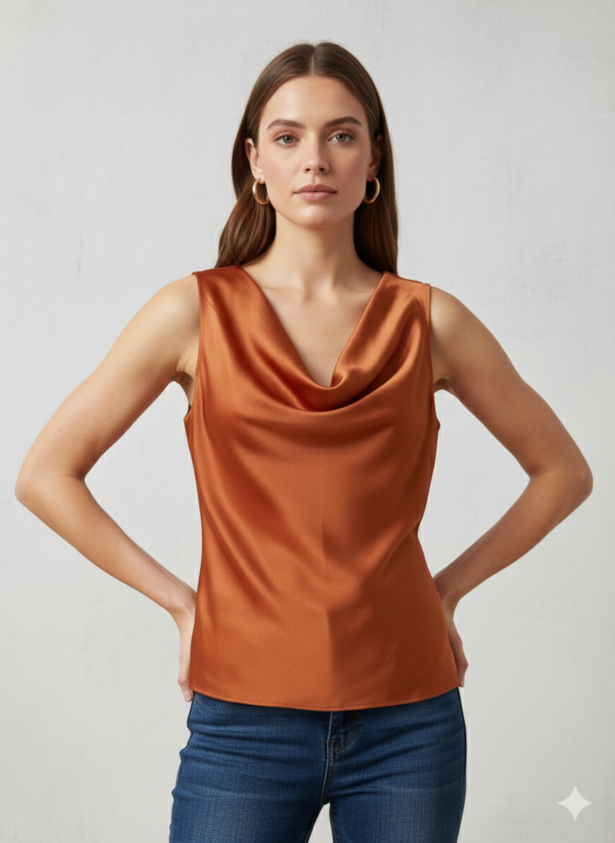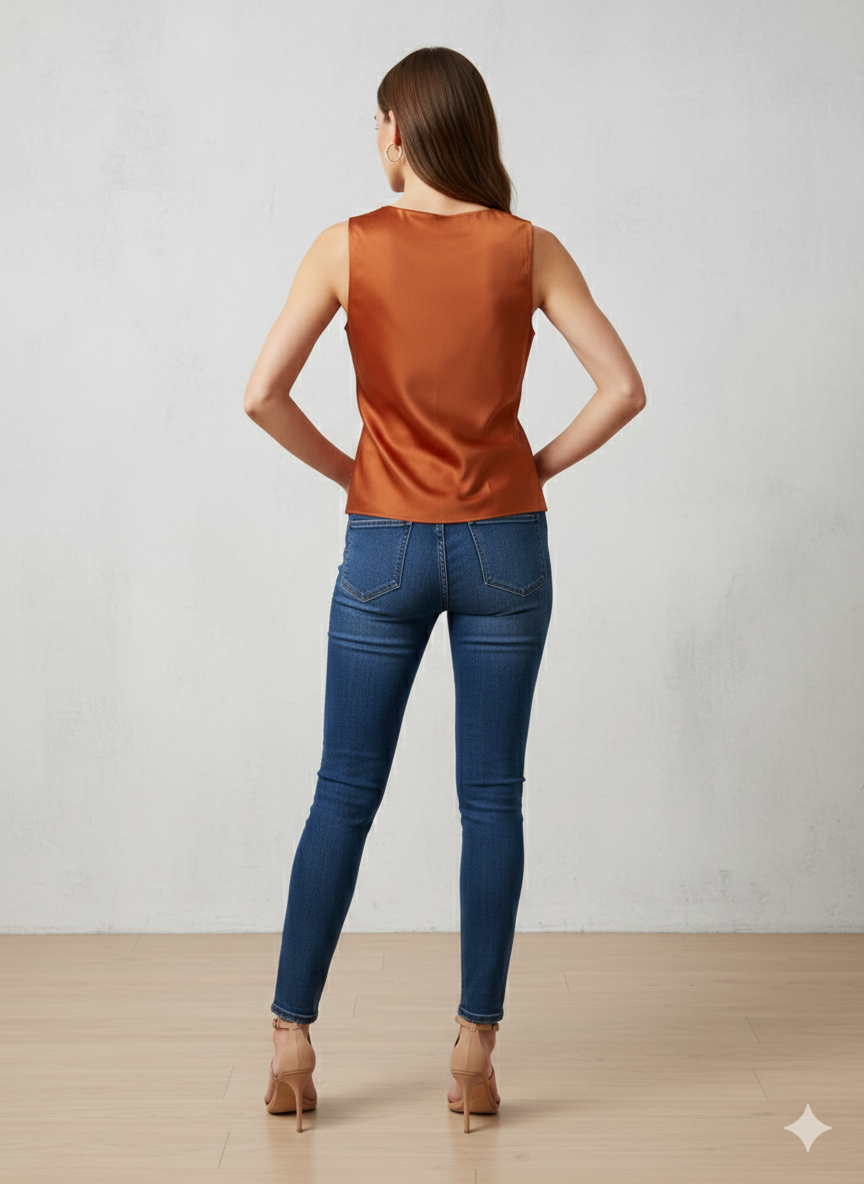 Canotta in morbido Raso con Scollo ad anello in colore ruggine – Eleganza e Lucentezza Made in Italy.