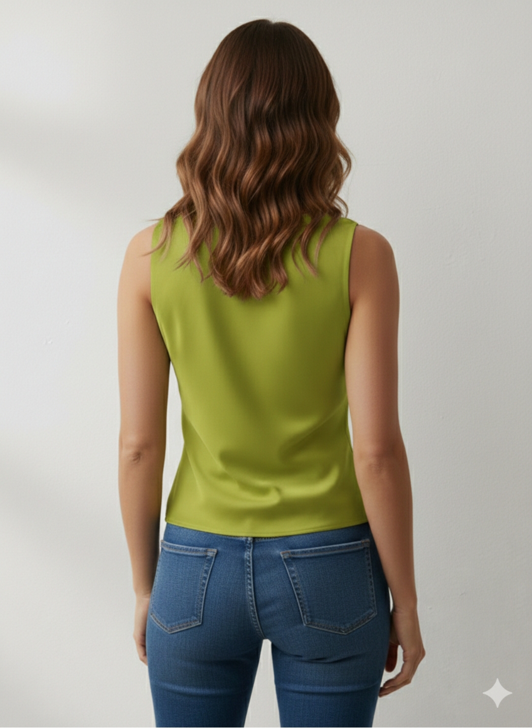 Canotta in morbido Raso con Scollo ad anello in colore Verde Acido – Eleganza e Lucentezza Made in Italy.