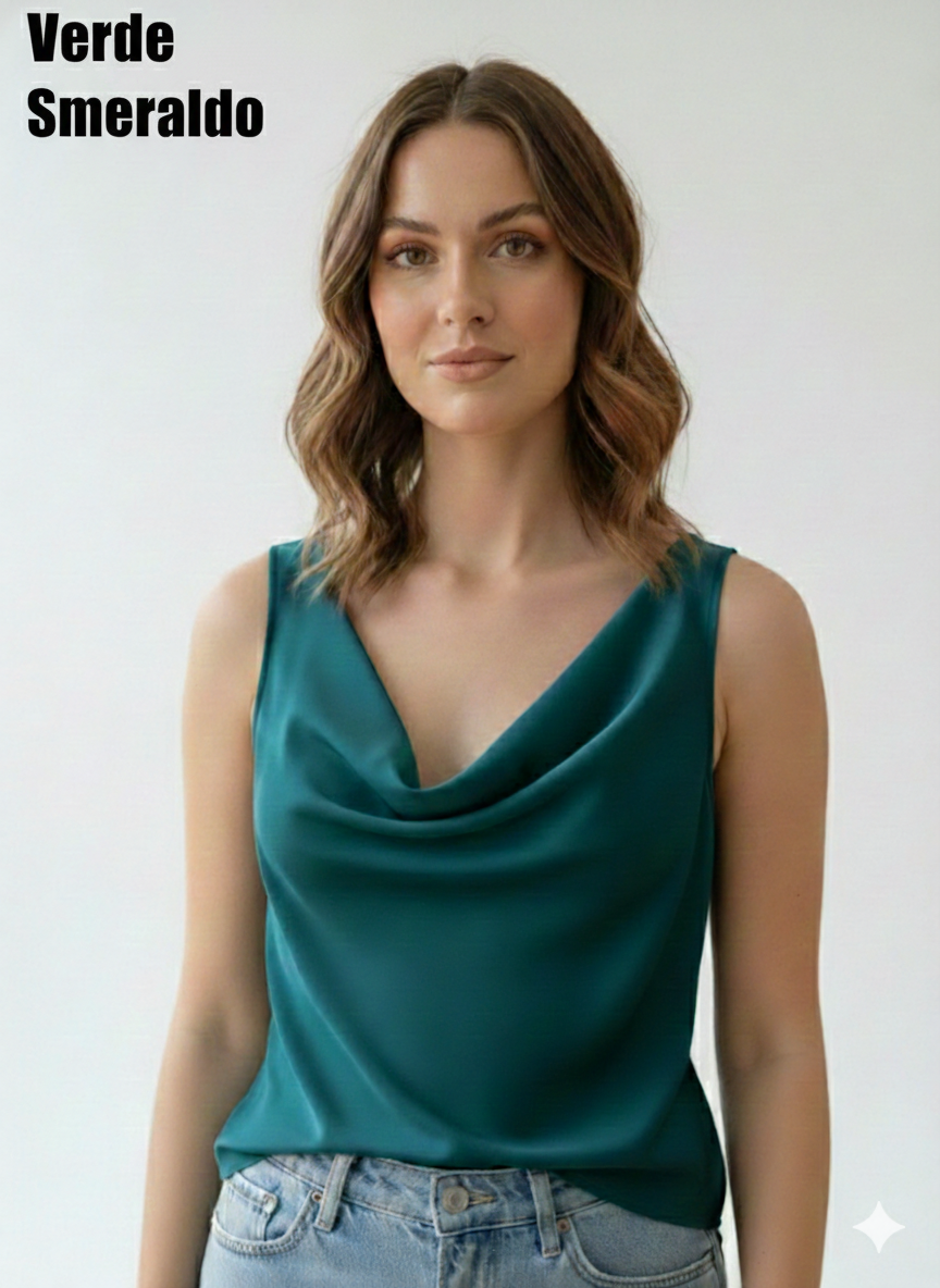 Canotta / sotto giacca in Raso con Scollo a Cappuccio – Made in Italy Elegante e luminosa, questa canotta in pregiato raso è il pezzo chiave per ogni tuo outfit