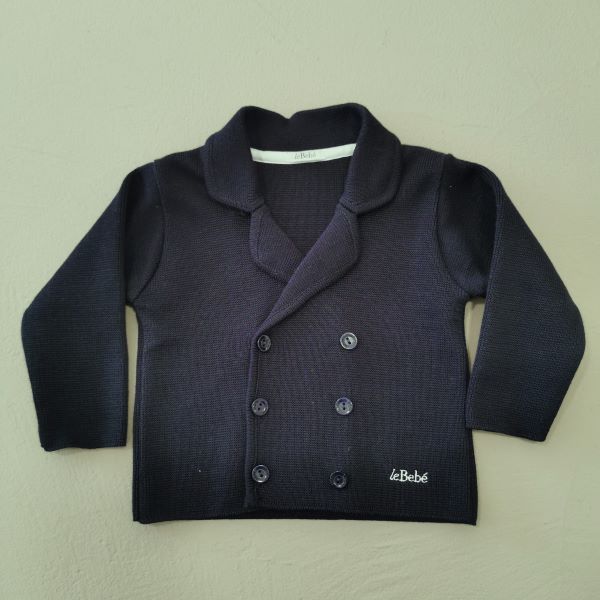 Le Bebè Cardigan doppio petto blu in cotone