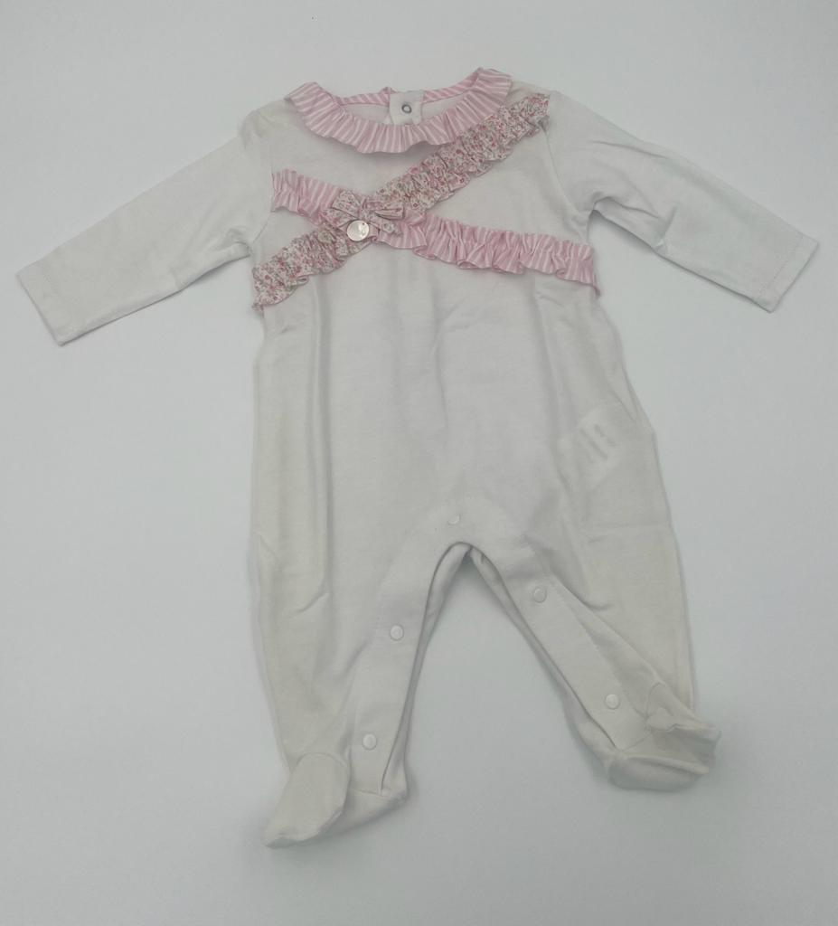 Le-bebè Tutina bianca e rosa a manica lunga in cotone