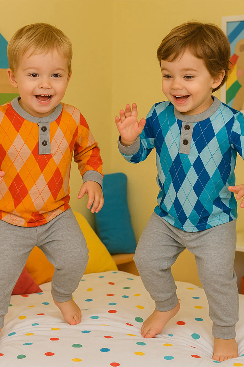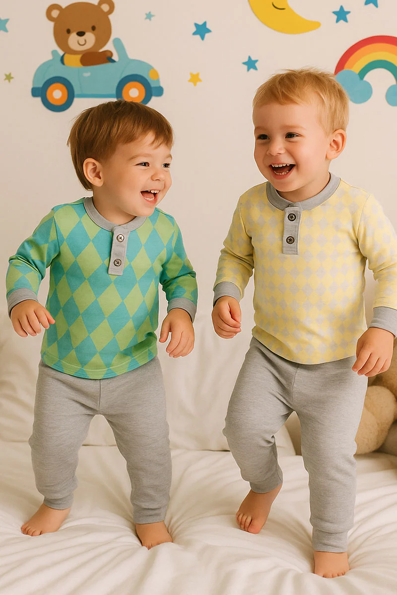 Pigiama bimbo in punto milano fantasia rombi (argyle)