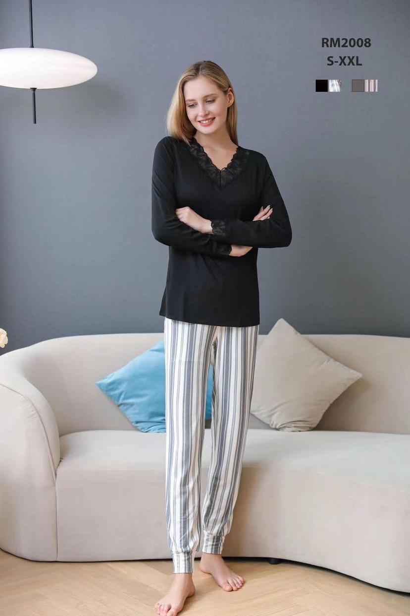 Pigiama donna in viscosa scollo v con inserti in pizzo