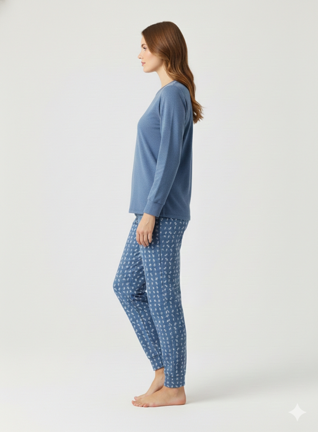 Pigiama Donna in Punto Milano – Blue Melange. Un set elegante e pratico, caratterizzato da un tessuto morbido e compatto che assicura calore e una vestibilità perfetta.