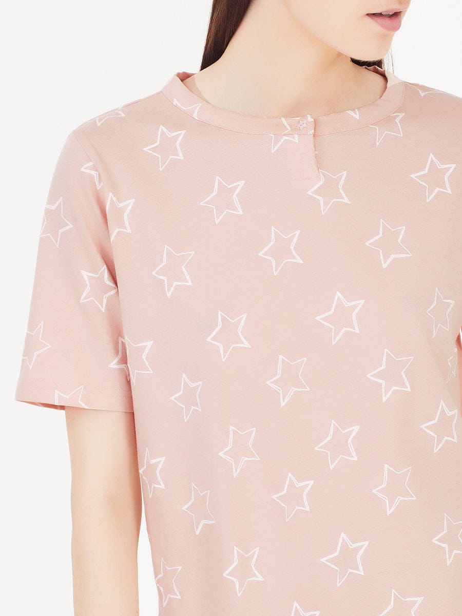 Casacca a mezza manica con stampa a fantasia stella con collo a serafino con chiusura con un bottone;