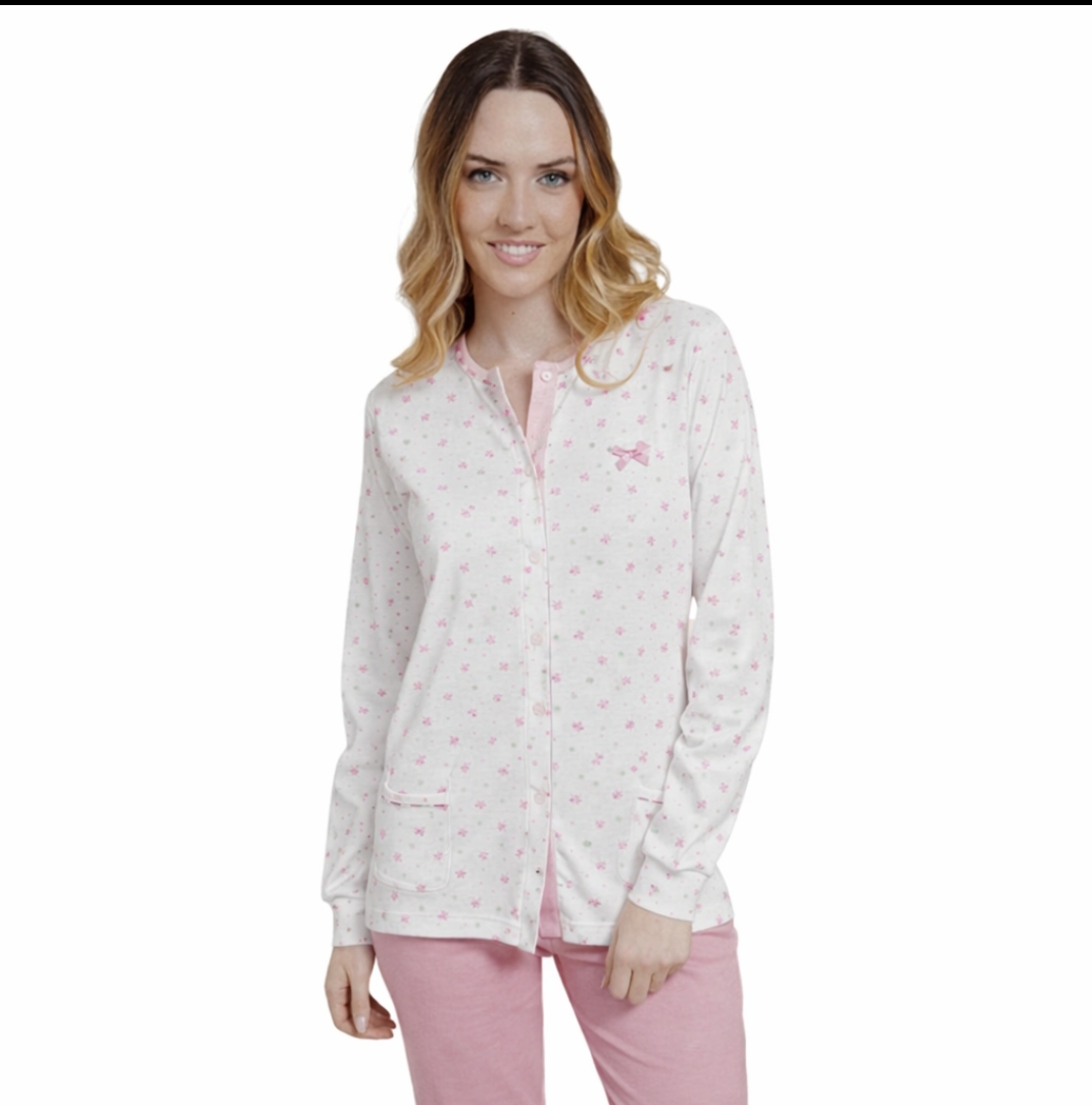 Pigiama Donna marca Irge in caldo cotone– Serie Chic Premium tutto aperto avanti in fantasia floreale