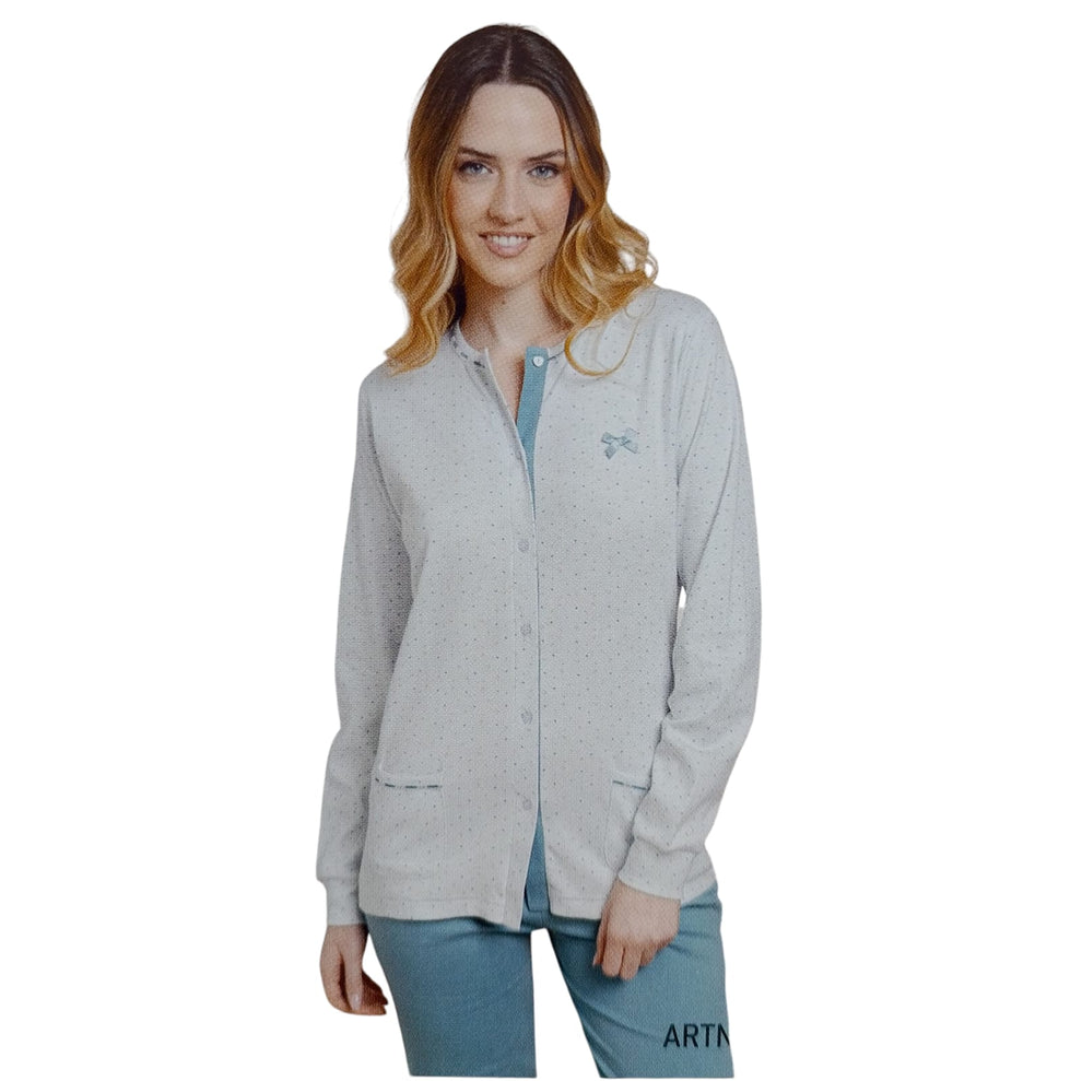 Pigiama donna Irge – Serie Chic Premium in caldo cotone, completamente aperto davanti con bottoni per il massimo comfort. Elegante e pratico, è adatto anche per ricovero ospedaliero.