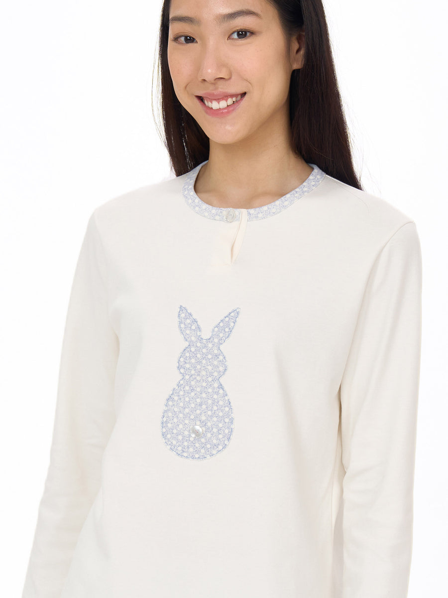 -la casacca, a tinta unita, presenta un adorabile dettaglio coniglietto nella parte centrale, che aggiunge un tocco dolce e giocoso al capo;
