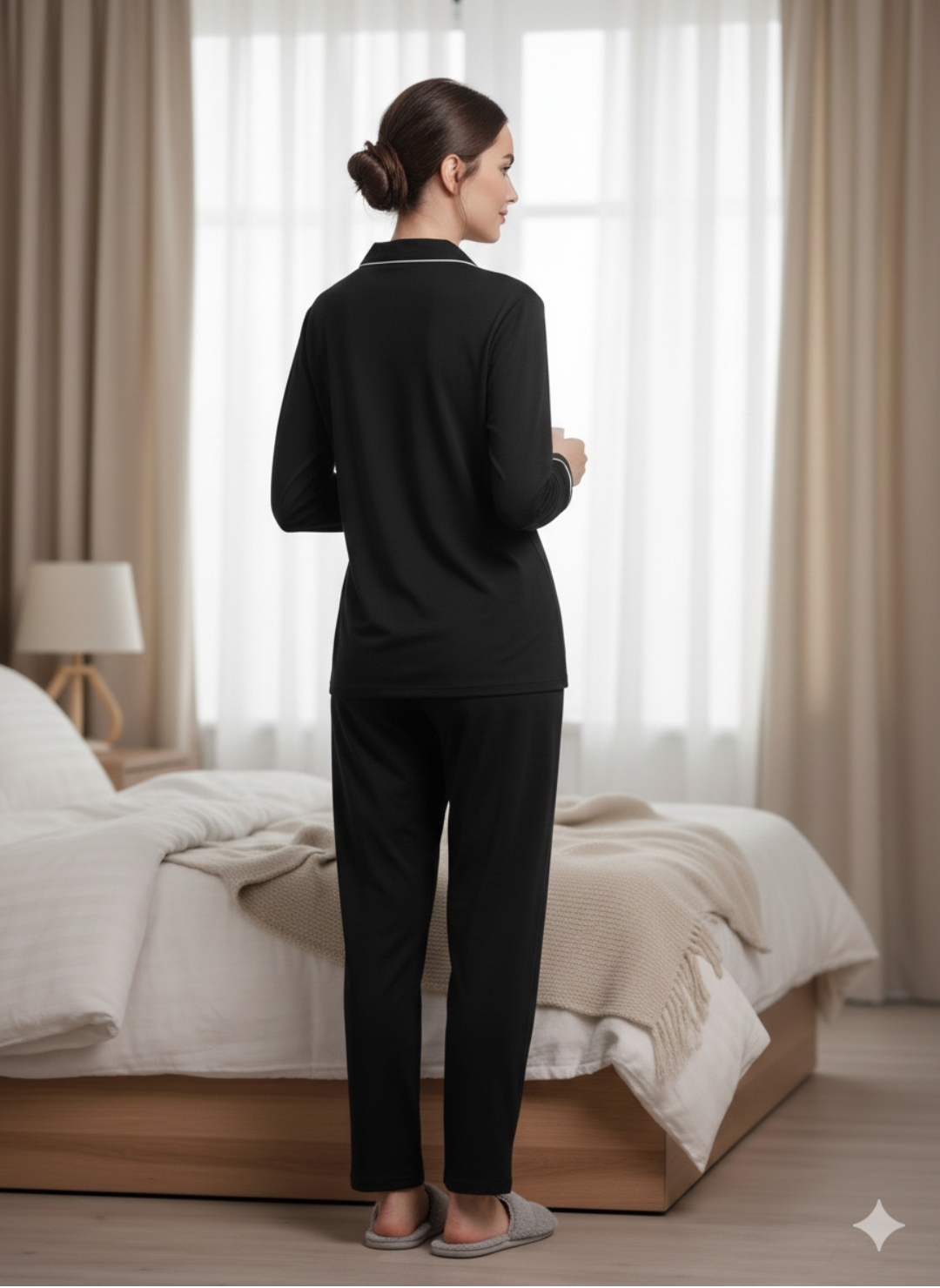 Pigiama Comfort in Pregiata Viscosa Naturale – Nero Intramontabile.