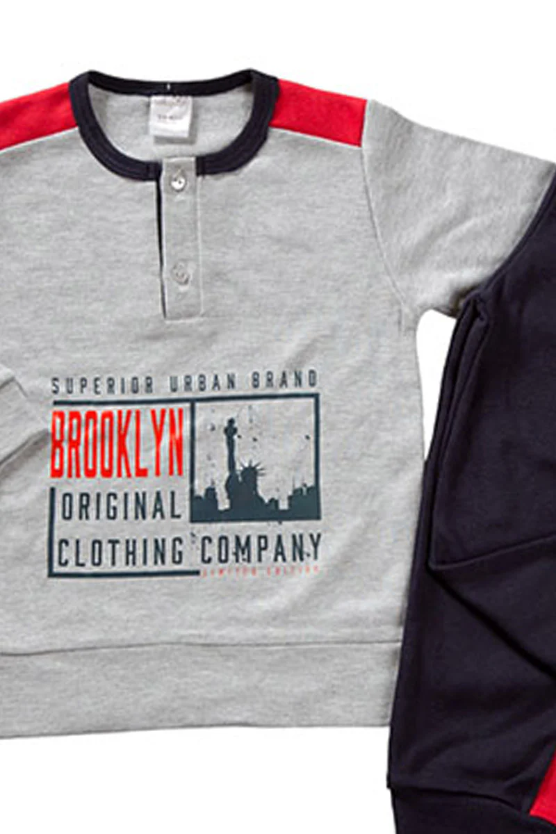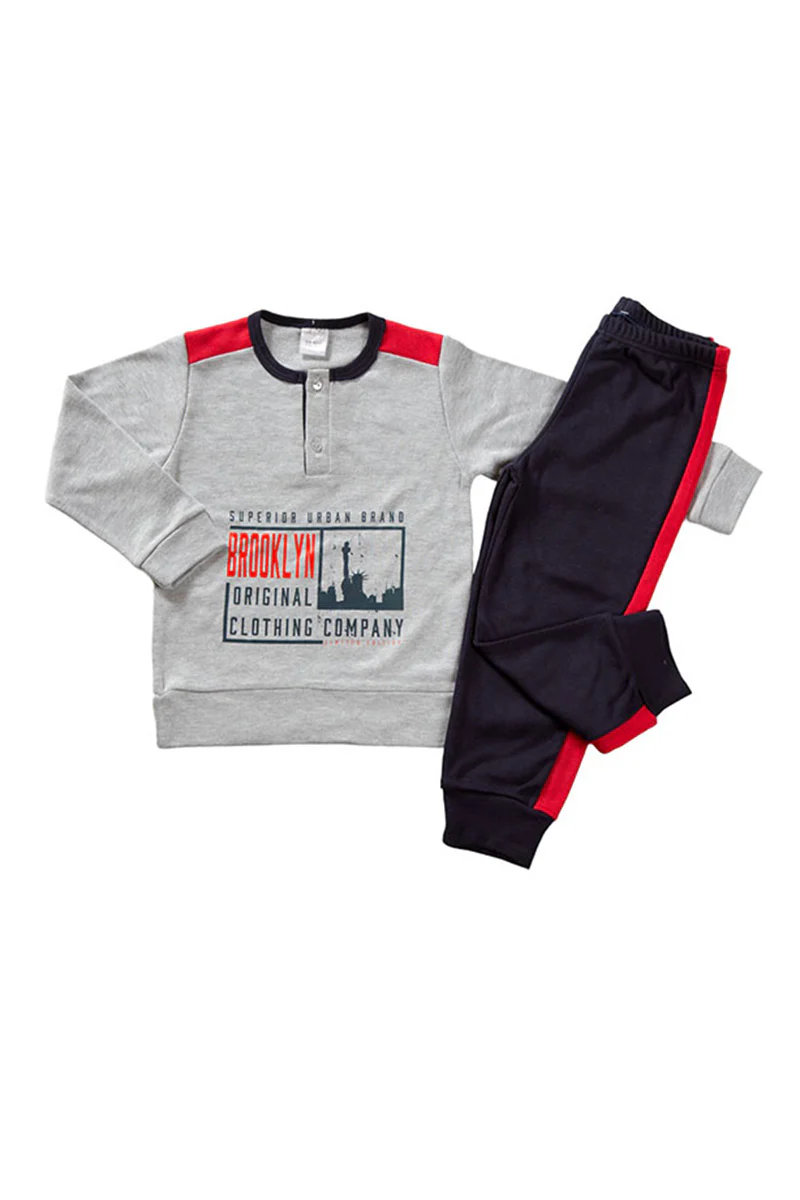 Pigiama in caldo cotone con stampa maniche e pantalone in contrasto