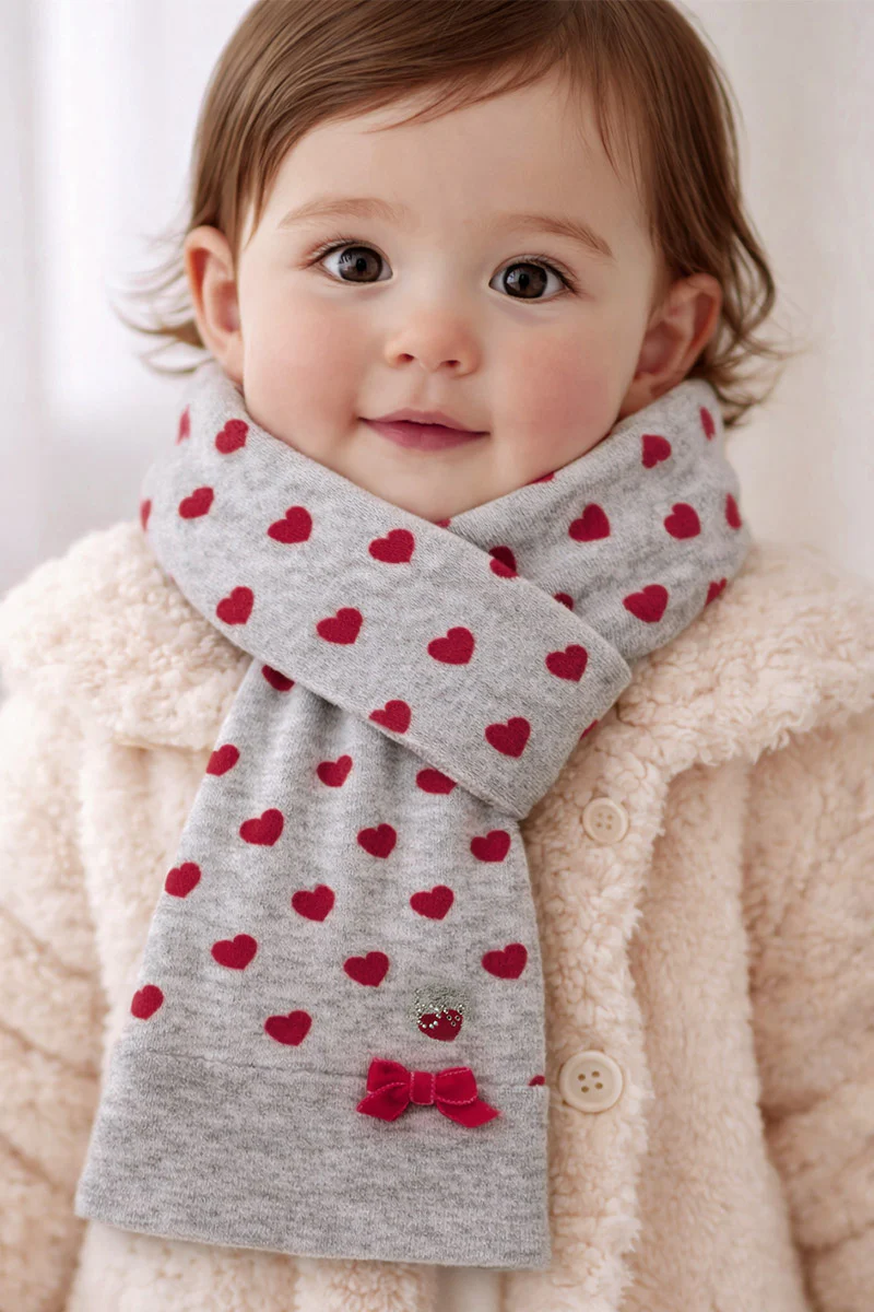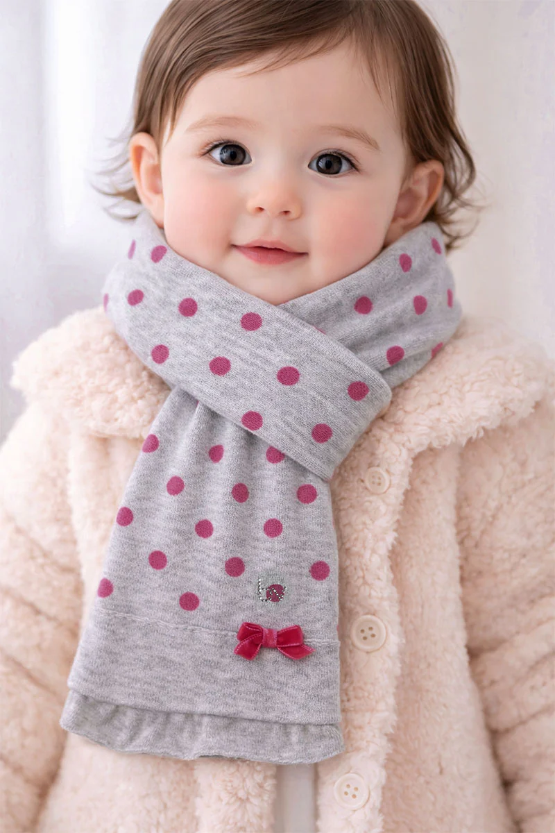 Sciarpa bimba con frange e fiocco rosa e strass