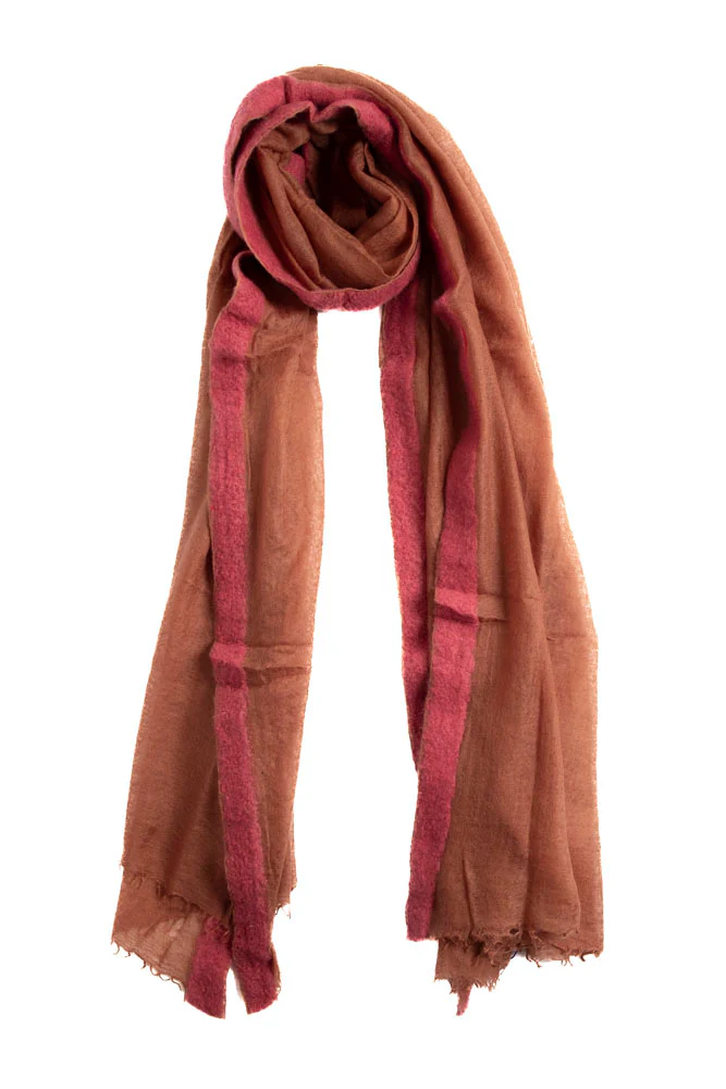 Sciarpa Mirror in the Sky in cachemire chili marrone e fuxia gran souffle semi felted