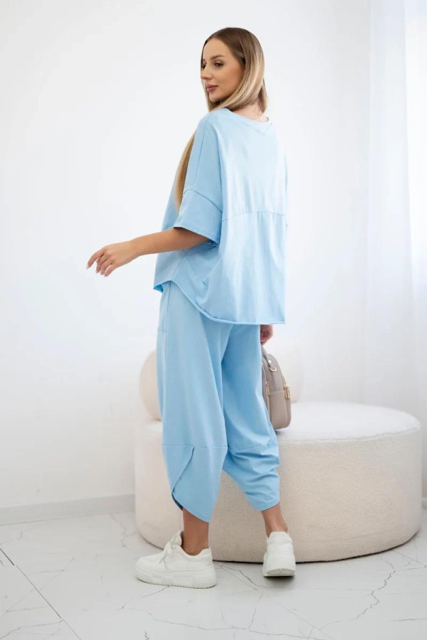 Favolosa tuta donna modello Japan in leggerissimo tessuto di viscosa a mezza manica in colore celeste.